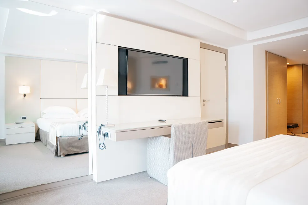 Ogni dettaglio, dalle linee pulite agli esclusivi prodotti di benvenuto, crea un'atmosfera rilassante, un vero invito a rilassarsi dopo una giornata a Monte Carlo.