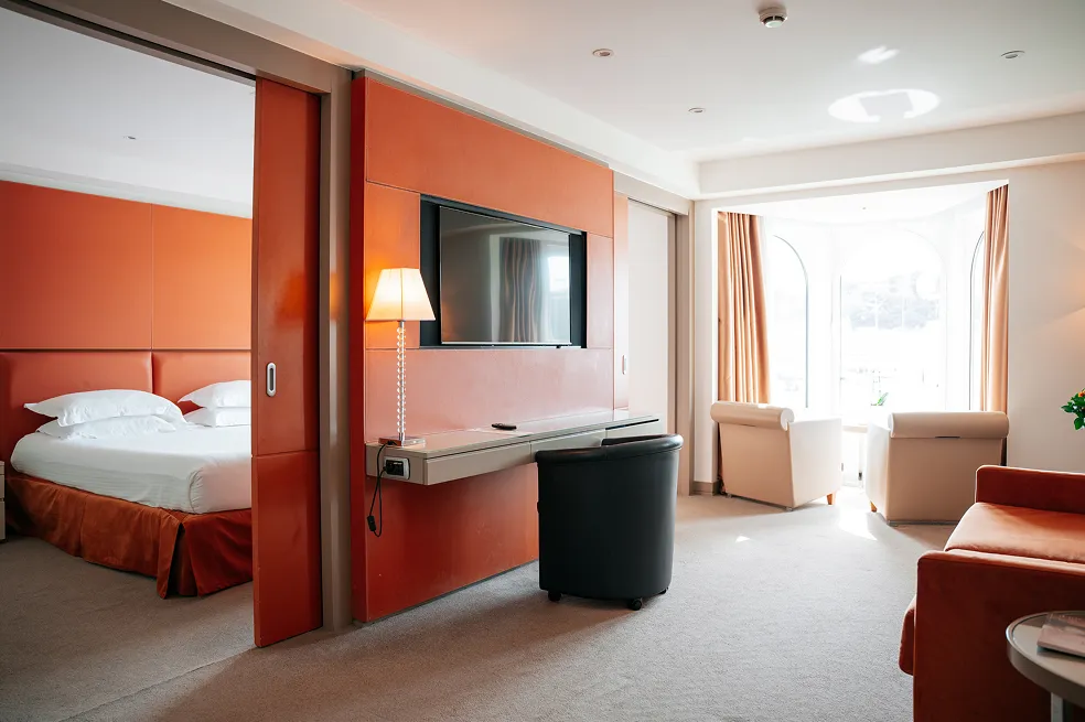 La suite include anche una camera da letto separata e una comoda area salotto per una maggiore comodità e privacy.